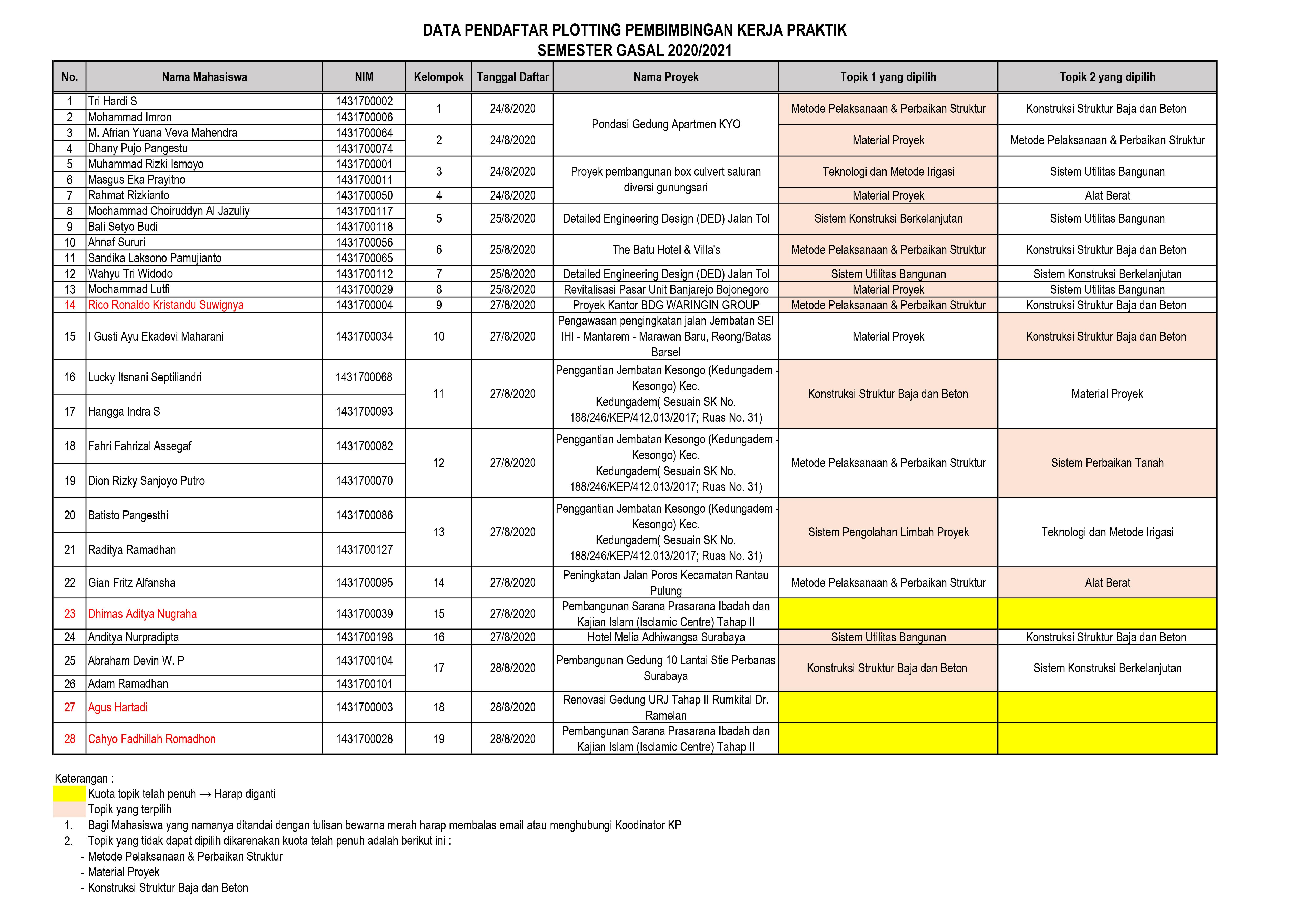 REKAP DATA PENDAFTAR PLOTTING PEMBIMBINGAN KERJA PRAKTIK SEMESTER GASAL 2020/2021