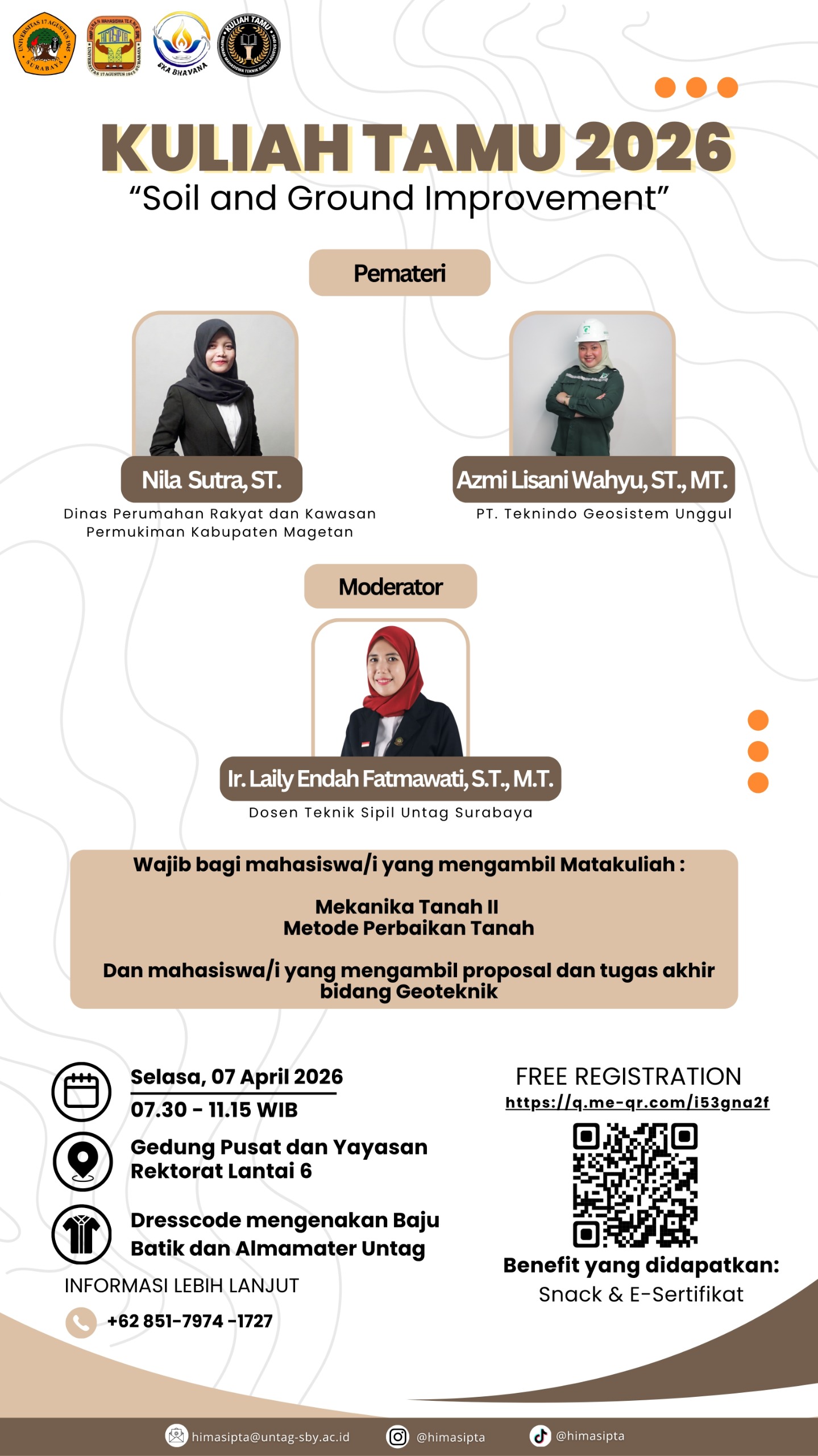Untuk itu Program Studi Teknik Sipil mengucapkan : "Semoga damai dan kesucian menyertai kita dalam perayaan Hari Nyepi. Selamat Hari Raya Nyepi! Semoga kita dapat merenung dalam ketenangan, memperbaiki diri, dan mendapatkan kedamaian dalam jiwa. Selamat berpuasa, bermeditasi, dan menjaga keheningan. Selamat merayakan Hari Nyepi dengan sukacita dan penuh kebahagiaan bersama keluarga dan orang-orang terkasih. Semoga tahun yang baru ini membawa berkah dan kebahagiaan bagi kita semua. Selamat Hari Raya Nyepi!"