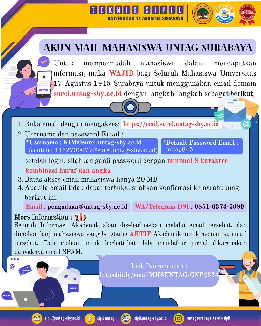Program Studi Teknik Sipil, Fakultas Teknik Universitas 17 Agustus 1945 (UNTAG) Surabaya kembali menyelenggarakan kegiatan Seminar Proposal Tugas Akhir (TA) Sesi 1 pada tanggal 04–05 November 2025.