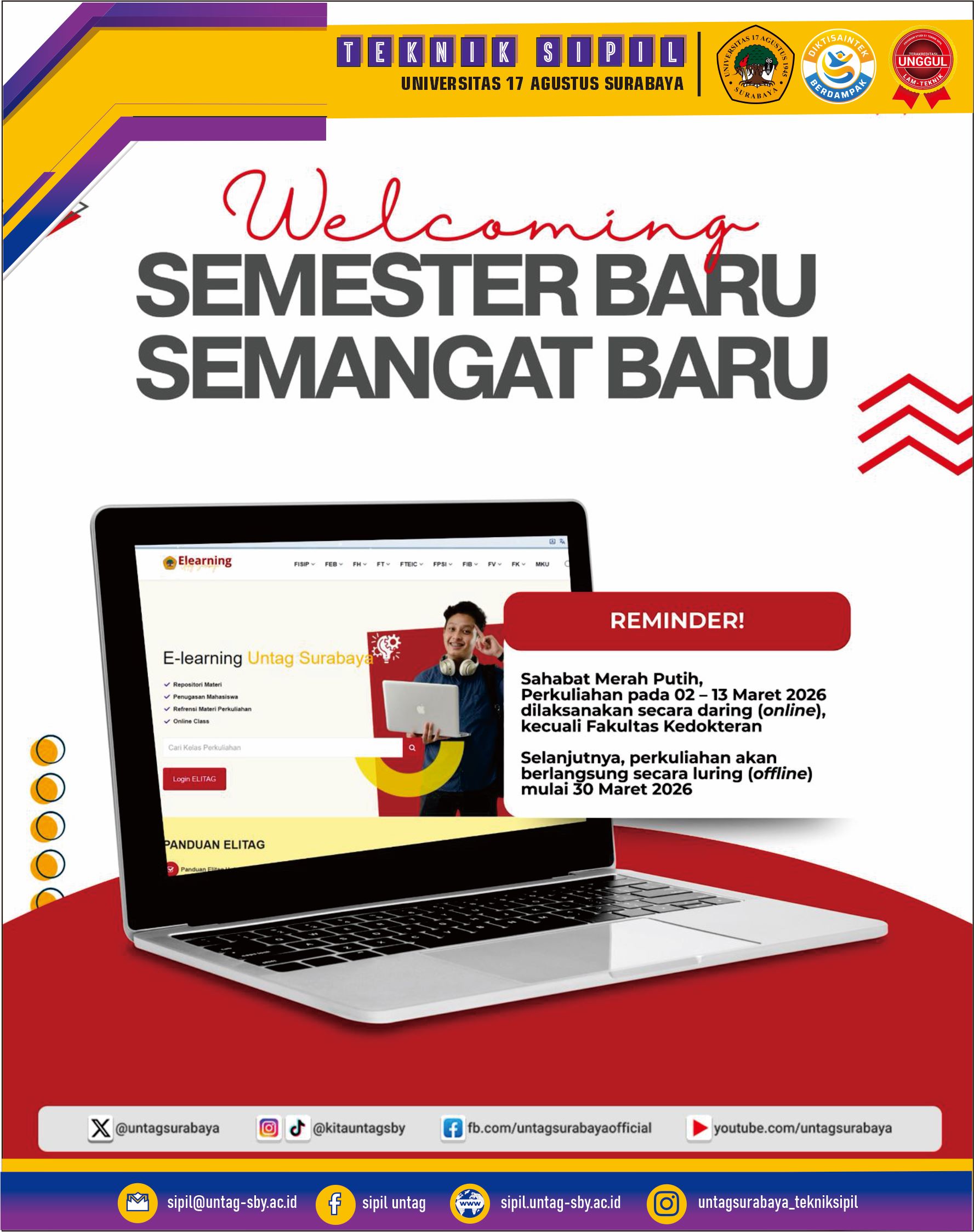 Program Studi Teknik Sipil Universitas 17 Agustus 1945 Surabaya Welcoming Semester Baru, Semangat Baru