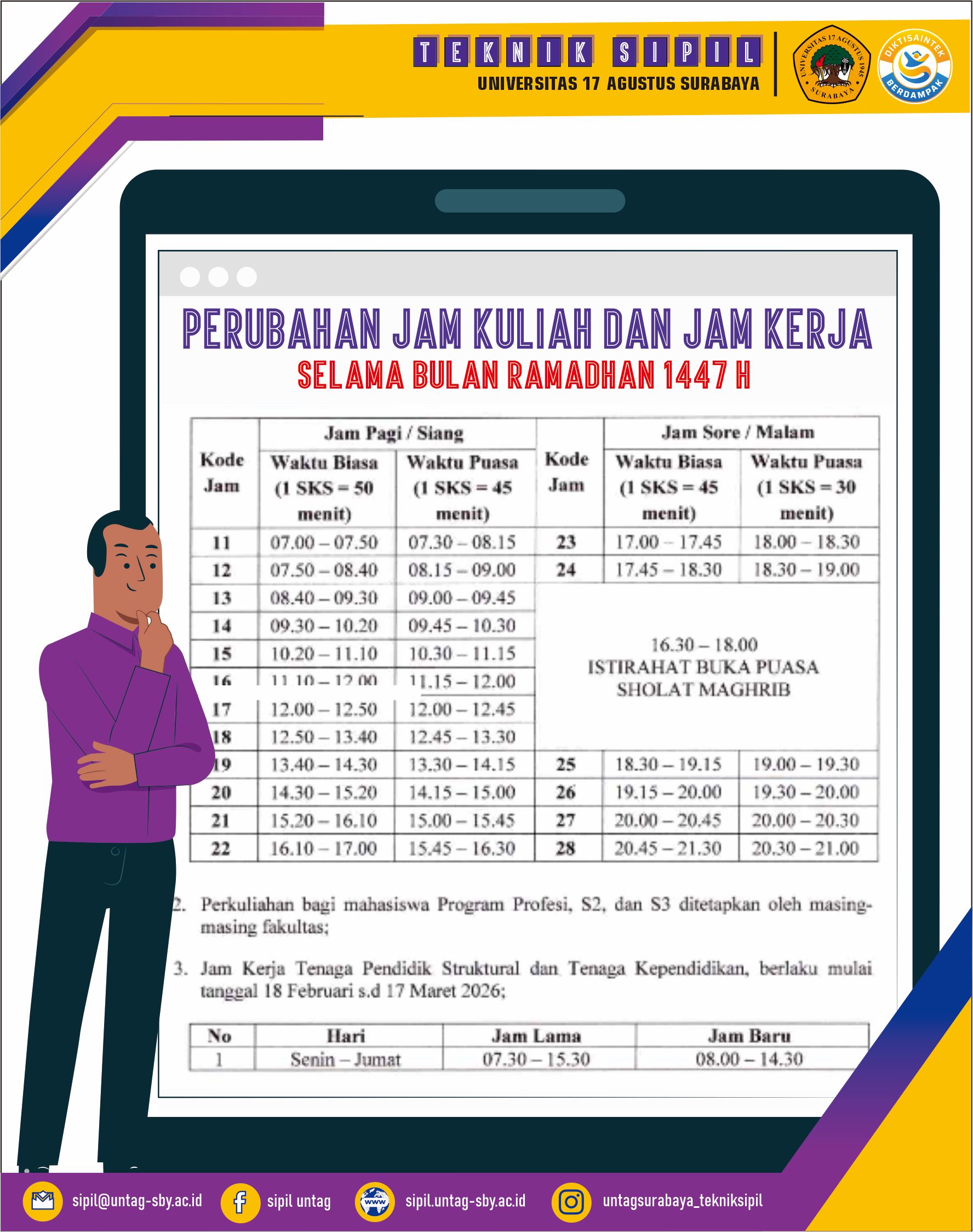 Perubahan Jam Kuliah dan Jam Kerja Selama Bulan Ramadan 1447 H Universitas 17 Agustus 1945 Surabaya